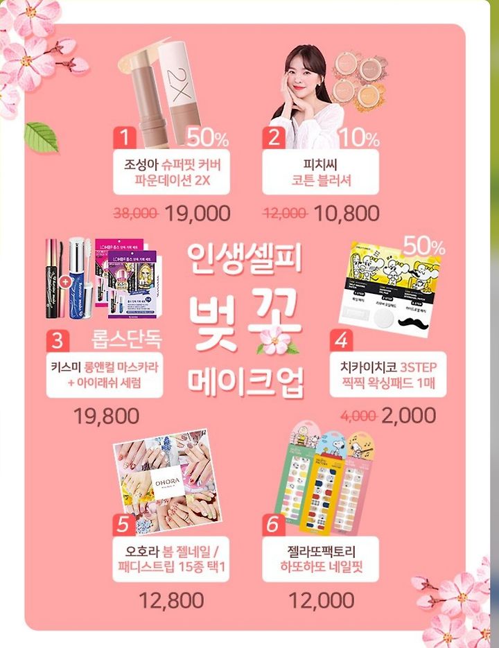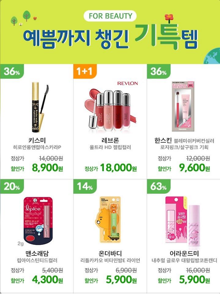 이어서 봄 메이크업 제품들입니다. 아까 세일을 했던 키스미 마스카라와는 별도로 키스미 롱앤컬마스카라와 아이래쉬 세럼이 함께 들어있는 기획세트가 있네요. 19800원인데 두 제품이 들어있다보니 세럼을 원하셨던 분들은 기획세트가 더 나을 수 있겠어요.