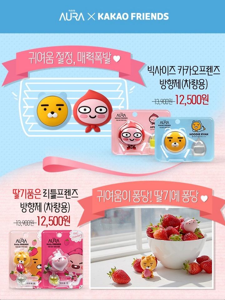 저는 카카오캐릭터를 정말 좋아하는데 요즘 롭스에서 다양한 카카오 제품들을 볼 수 있어 좋습니다. 특히 아우라는 귀여운 방향제에 카카오프렌즈를 넣어서 차량용으로 사용하면 매일 차를 볼때마다 귀여워져요. 이후 리필만 사서 갈아끼우면 귀여운 캐릭터 바디를 그대로 유지할 수 있는 것도 매력입니다.